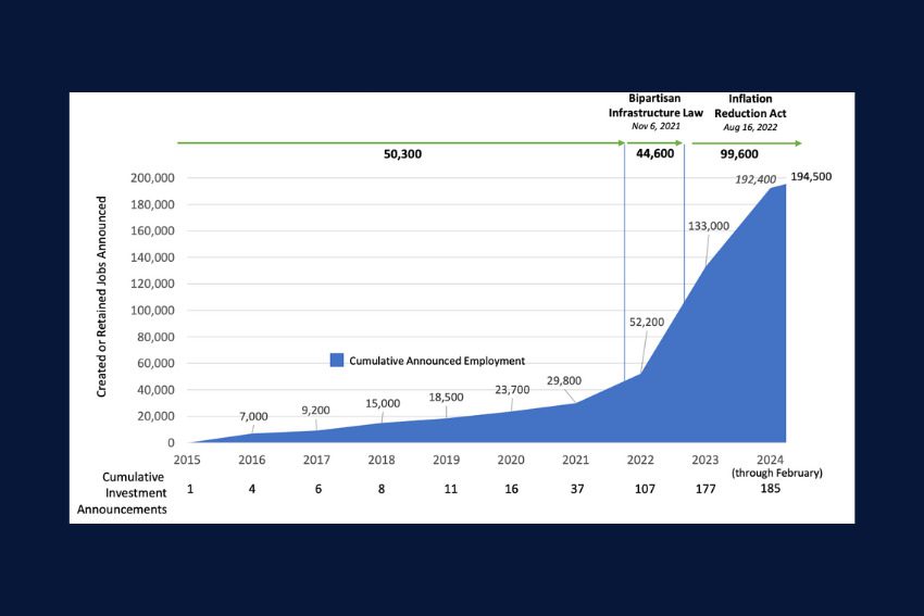 The recent report found that $188 billion in EV-related manufacturing investments have been announced nationwide since 2015—with the vast majority of them receiving federal support through the passage of either the Inflation Reduction Act or the Bipartisan Infrastructure Law.