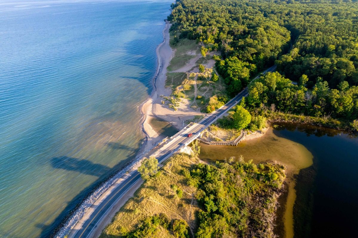 The beach of the Sturgeon Bay Dunes, located inside the Wilderness State Park, is a peaceful, scenic escape for those seeking quiet and solitude. This stunning stretch of coast lies just north of Sleeping Bear Dunes National Lakeshore and offers a more secluded alternative to the park’s more well-known beaches. One reader recalled nestling in a white sand dune in August, surrounded by fluttering monarch butterflies and cooled by the crystal-clear waters—this destination makes postcard-esque moments possible.