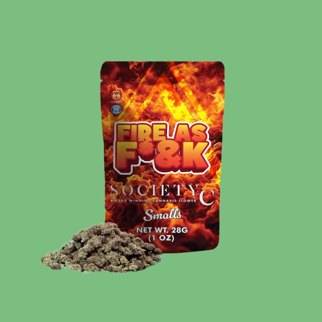 You’ve got to respect a company confident enough to name their flower Fire As F#ck—and then actually back it up. Society C blends Jet Fuel Gelato with Gelato 45 for a hybrid that smells like someone lit a fruit stand on fire. This strain is known for its spicy-sweet funk and a euphoric, giggly high that hits fast but never overwhelms. It’s not a gimmick; it’s just truth in advertising.