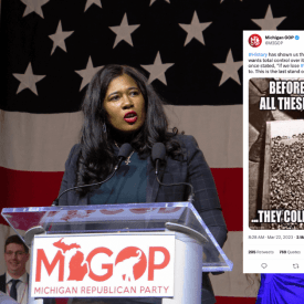 The election denying extremist who is in charge of the Michigan Republican Party has cooked up some offensive new scare tactics to oppose proposed gun safety legislation in Michigan—but they’re just more bizarre conspiracy theories.