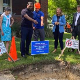 President Joe Biden’s “Investing in America” tour took form in Grand Rapids on Wednesday morning as lawmakers and community leaders peered into a pit in front of the home of Paige Biek and her family.