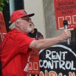 A group of renters rallied outside of the Lansing Center amid the Building Michigan Communities Conference in downtown Lansing.