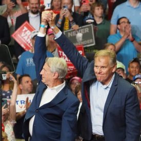 As former President Donald Trump played to supporters in Grand Rapids, Republican businessman Sandy Pensler and former US Rep. Mike Rogers briefly stole the spotlight.