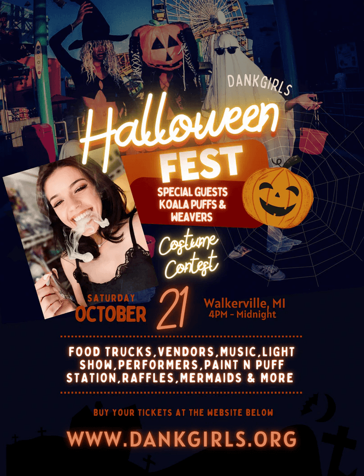 They promise a spellbinding night, kicking off their Halloween Fest with special guests Koala Puffs and Weavers—true cannabis queens who will guide you through an evening of mysterious fun and laughs.