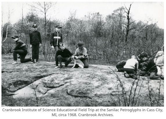 Back then, the Cass River ran next to the rock, having not yet eroded into a valley. The river was an important source of food and life, and this rock became an important place to honor that source. The Anishinaabeg people would meet there to share stories and food, hold spiritual ceremonies, and carve teachings and stories into the stone.