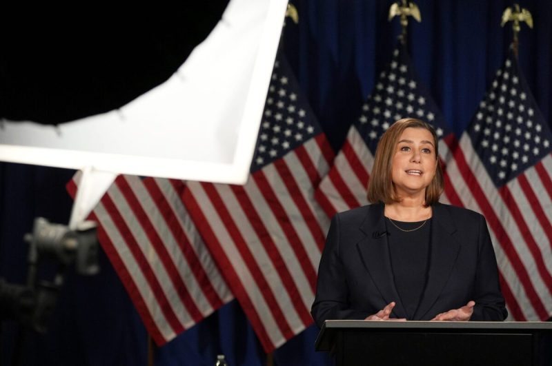 US Sen. Elissa Slotkin D-Mich. rehearses ahead of giving the Democratic response which will follow President Donald Trump's speech to a joint session of Congress, in Wyandotte on Tuesday, March 4, 2025. (USA Today Network)