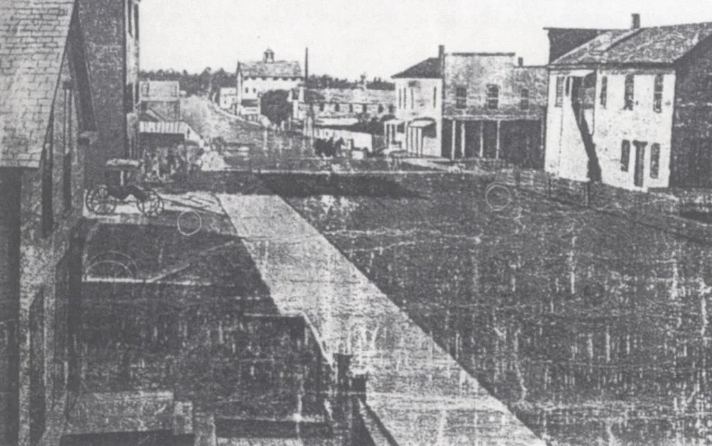 Image of River Street in Holland, Michigan, sometime during the Civil War. (Photo courtesy of Hope College Library, Archives and Special Collections)