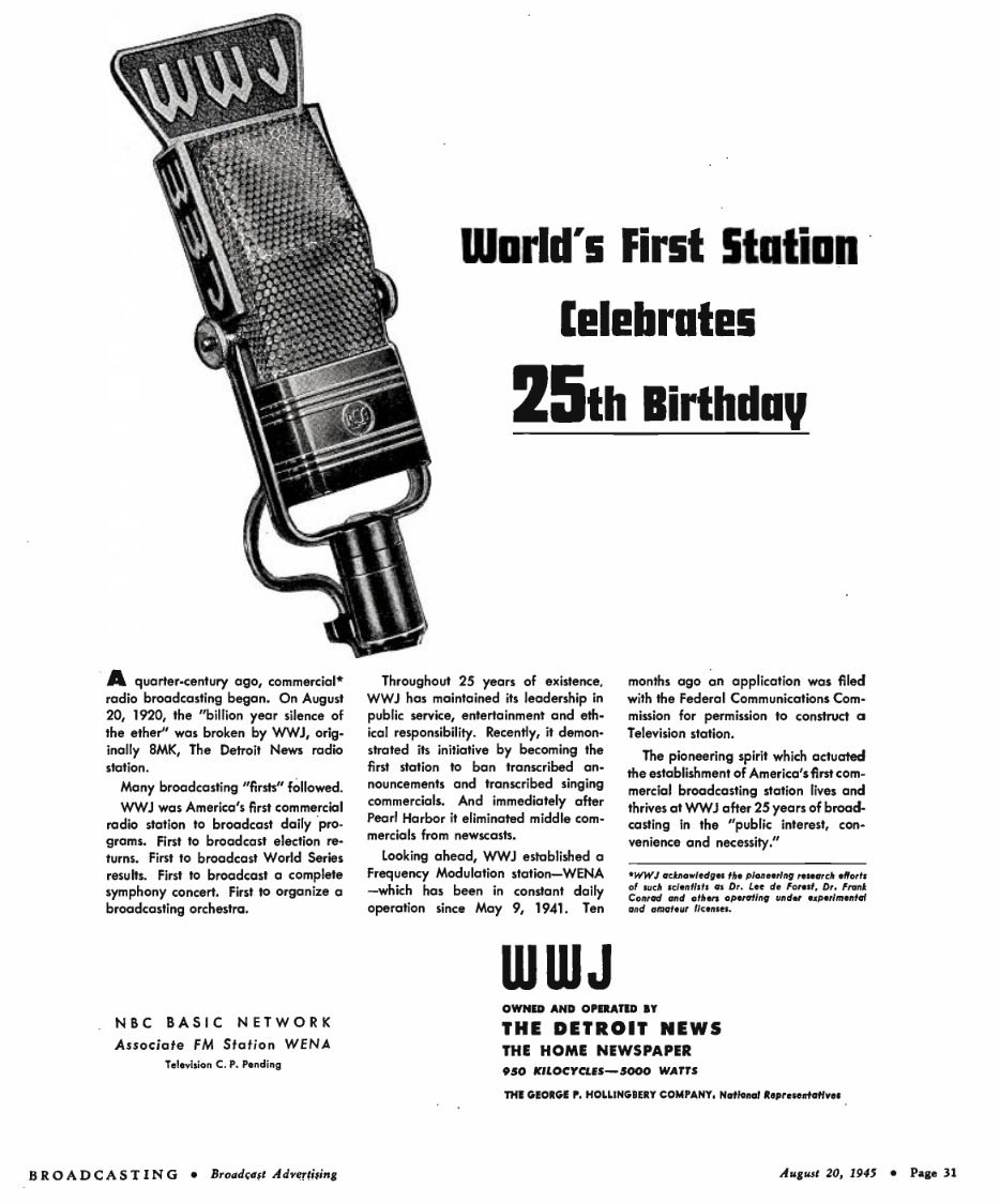 While KDKA in Pittsburgh was founded on Nov. 2, 1920—weeks after the launch of 8MK—it has also claimed to be the “Pioneer Broadcasting Station of the World.” Part of the argument is how involved the Detroit News was in the operation prior to receiving its commercial license in 1921.
