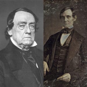 Lewis Cass pictured in 1855 (L) and Abraham Lincoln—then a member of the US House of Representatives—around 1846 (R). (Source: Collage via public domain photos)