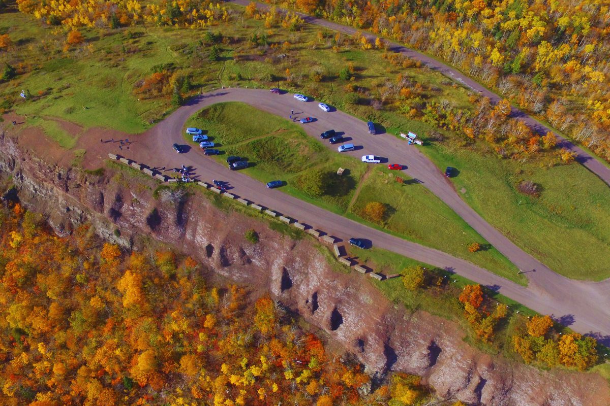 Located within the Porcupine Mountains Wilderness State Park, the site boasts a view that changes with the seasons. According to the Porcupine Mountains Ontonagon Area Convention & Visitors Bureau, “in late spring and summer, the valley below is bathed in emerald green of old-growth forest, and in the fall, the trees burst into a fiery palette of oranges, yellows, and reds.”