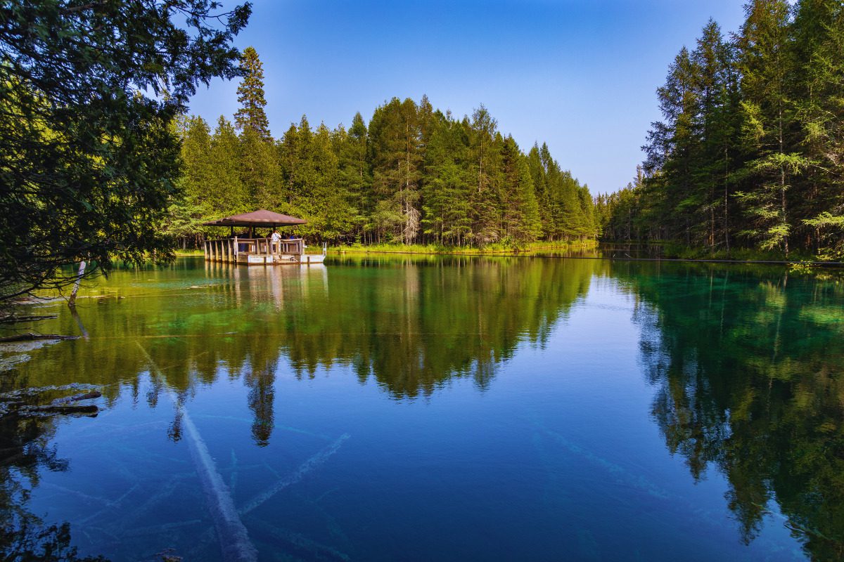 The oval-shaped spring measures 300 by 175 feet and is 40 feet deep with a green bottom. With a kaleidoscopic effect of constantly changing shapes and forms, it’s one of Michigan’s most captivating bodies of water, featuring a kaleidoscopic effect of constantly changing shapes and forms.