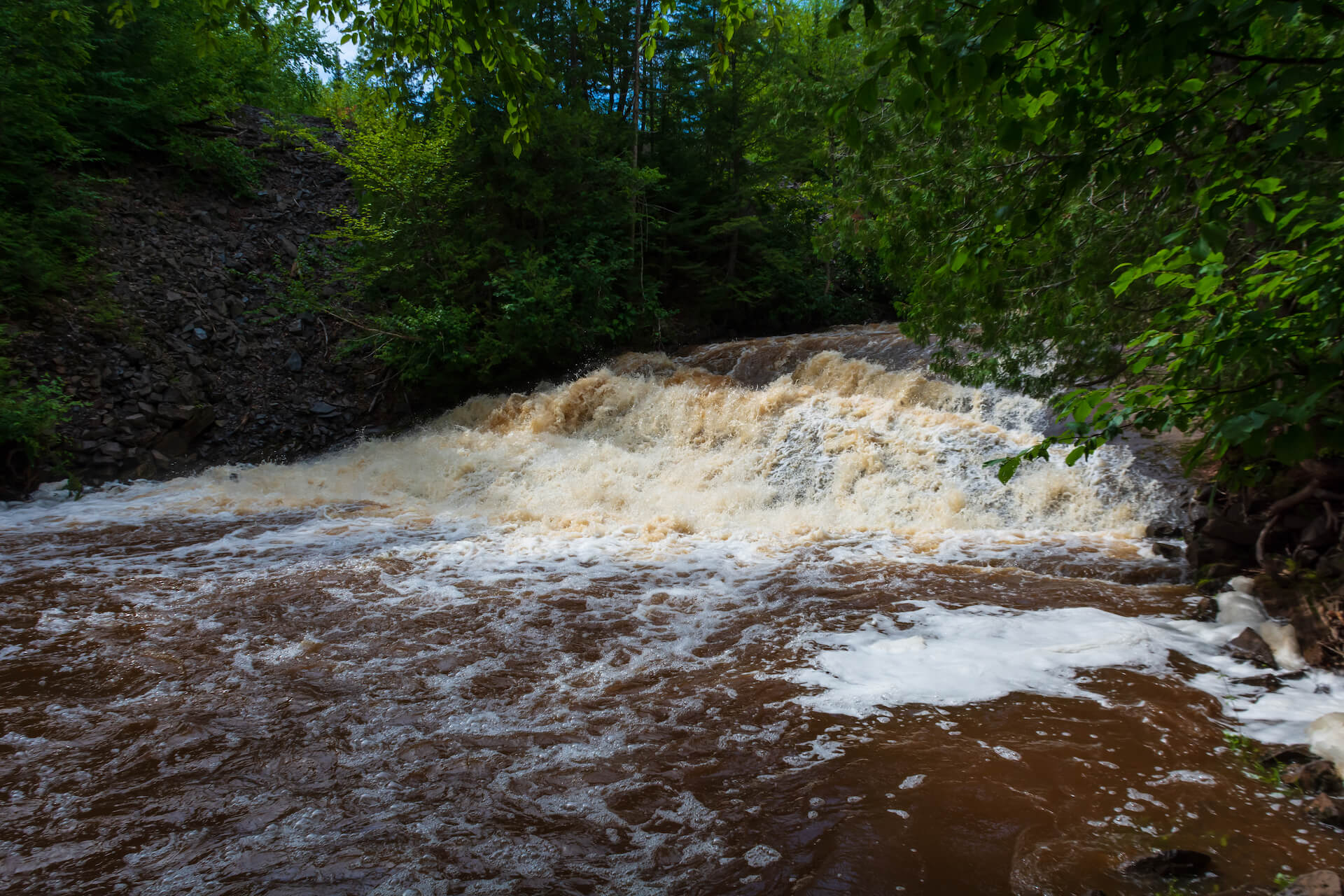 The waterfalls located at the ruins of the Nonesuch Mine, located in the Porcupine Mountains, in Ontonagon County, Michigan. – James W. Thompson/Shutterstock