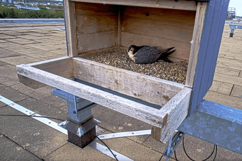 My personal favorite stream is this nest box, located on the roof of Michigan State University’s Spartan Stadium (maybe I’m biased as a Lansing resident). Since 2022, it has been the home of falcon parents Apollo and Freyja. Last year, they birthed four peregrine falcon chicks: Pickles, Muhammad, Egbert, and Swooper. I highly recommend this stream because of its high-quality video and audio.