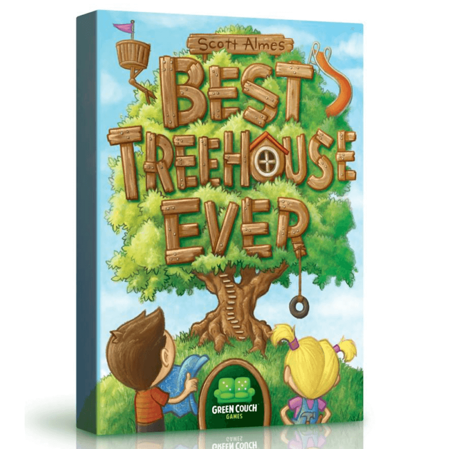 In Best Treehouse Ever, players put together ridiculously lavish treehouses, with rooms such as entertainment rooms, food rooms, and education rooms. Then, players continue to play to determine how the rooms are scored. A strategy element comes in the form of “Game Changer” cards, which can either increase or decrease the value of certain rooms.