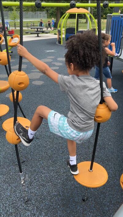 The playground is probably my favorite place for adventurous play. Because it has myriad things to explore right at your fingertips, and it’s relatively controlled. Obstacles like climbing up ladders, and slides to whizz back down; gauging height, balancing skills—it’s all right there.
