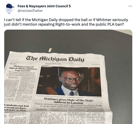 In November, Democrats were voted into state power in record numbers. Michigan’s Legislature turned blue for the first time in 40 years, and with Whitmer taking her second term as governor, many became hopeful that right-to-work would go right-on-out.
