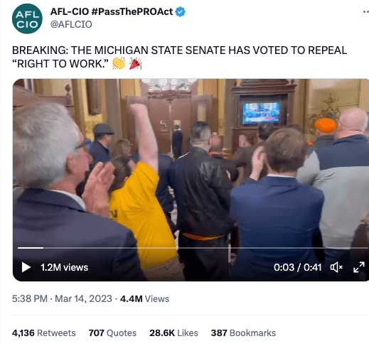 On March 24, 2023, Gov. Whitmer officially signed the package repealing the “Freedom to Work” law, making Michigan the first state in 58 years to take right-to-work off its books.