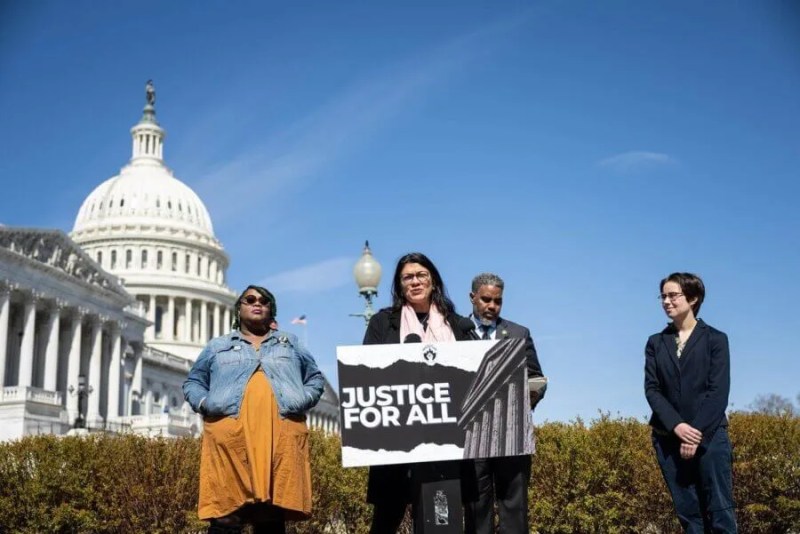 US Rep. Rashida Tlaib (D-Detroit) was joined by fellow Democrats Cori Bush of Missouri, Steven Horsford of Nevada and Sheila Jackson Lee of Texas for the news conference held on Capitol Hill.