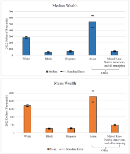 Federal data shows the median net worth of white families in 2023 was about $285,000—more than six times that of the average Black family, which tracked an average net worth of $44,900.