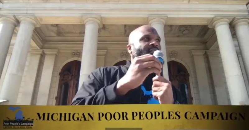 Michigan Poor People’s Campaign Chair Derrick Knox Jr. (Screenshot via Michigan Advance)