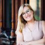 Photo of Abby Klomparens, from Greater Holland, candidate for Michigan House District 86, in front of photo of Michigan Capitol building