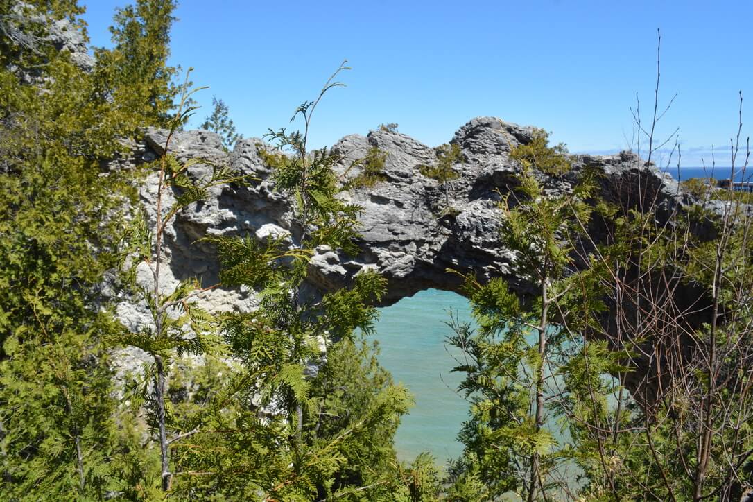 There are multiple ways to reach Arch Rock. But if you’re on bike, cut through the island via Rifle Range road. You can also take the lake path, M-185—but be prepared for 207 stairs up (and 207 stairs down).