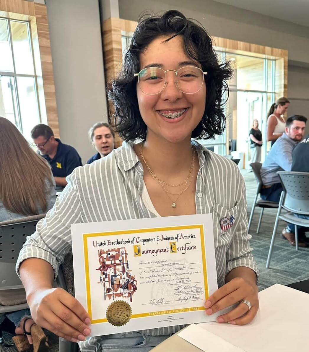 Fast forward about three years and Rivera is a certified carpenter. She’s the proud owner of a home just a few miles from her old shelter. And she’s earning about $65,000 a year as a journeywoman carpenter for the Michigan Regional Council of Carpenters and Millwrights.
